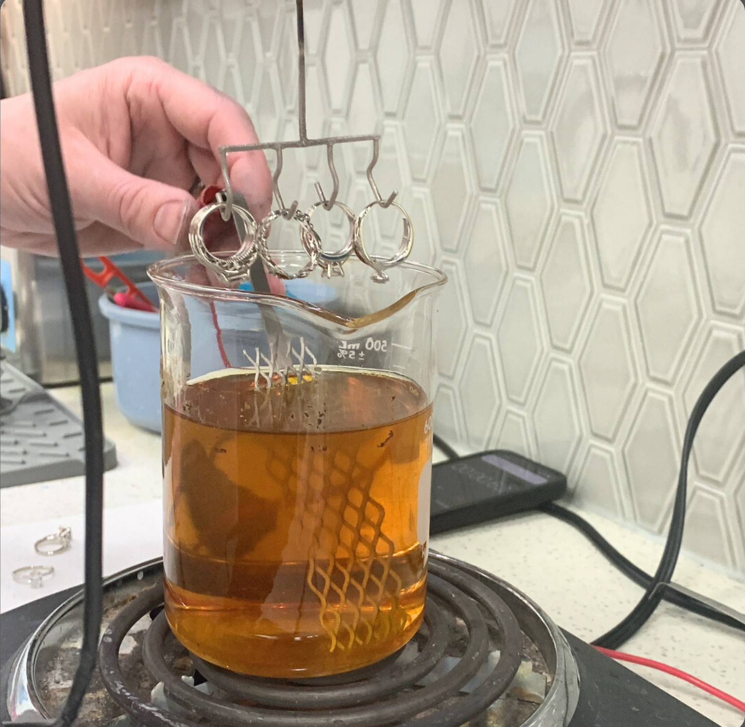 Rhodium plating not only improves appearance but also adds a protective layer that helps resist tarnish, surface scratches, and everyday wear. Each piece is carefully cleaned, polished, and plated on-site, ensuring consistent quality and fast turnaround.