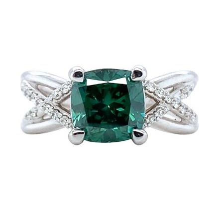 Made with all Natural Diamonds Material: 14k White Gold Total Weight: 2.42ctw Center Stone: 2.15ct Colour Enhanced Diamond