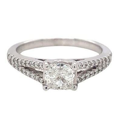 Made with all Natural Canadian Diamonds and Canadian Gold Material: 18k White Gold Total Weight: 0.94ctw Center Stone: 0.74ct Accent Stone(s): 32=0.20ctw Clarity: VS2 Colour: I