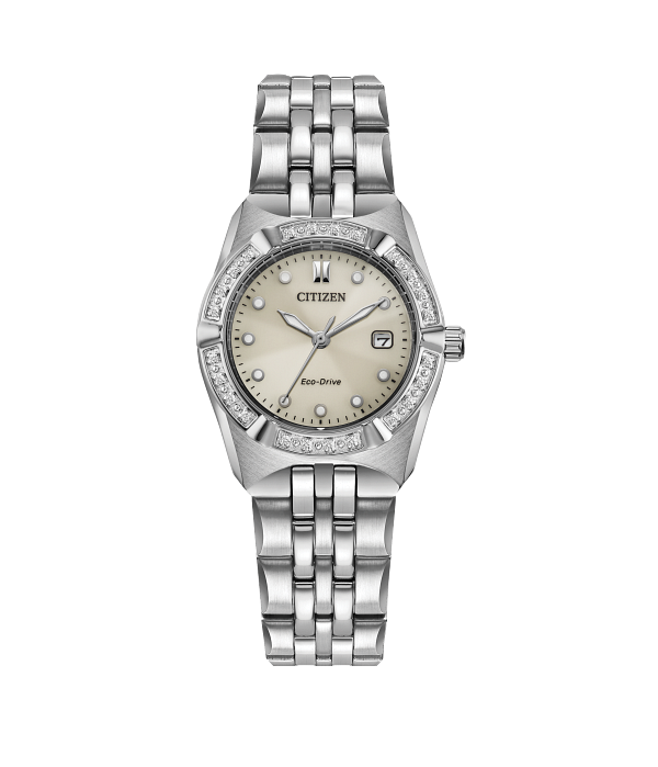 Movement: Eco-Drive Band Material: Stainless Steel Case Diameter: 28mm