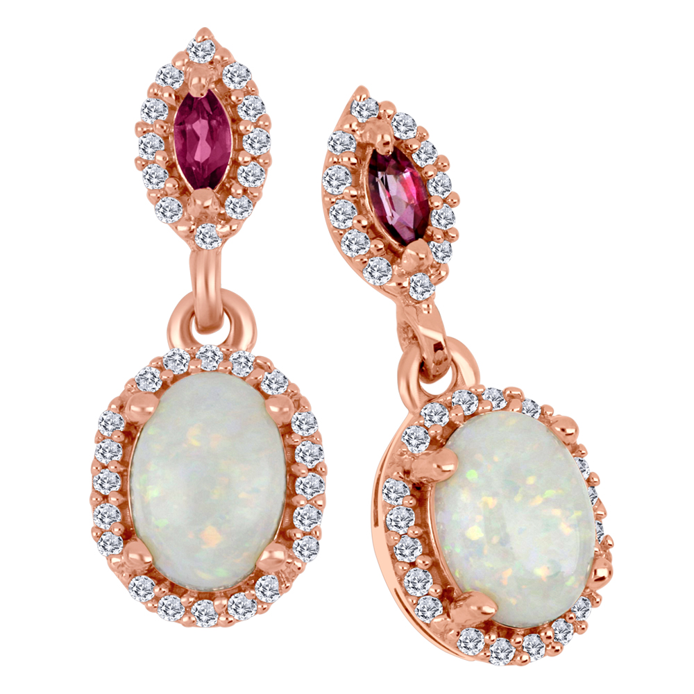 Material:10k Rose Gold Stone(s):Opal, Pink Tourmaline and 0.025ctw Natural Diamonds